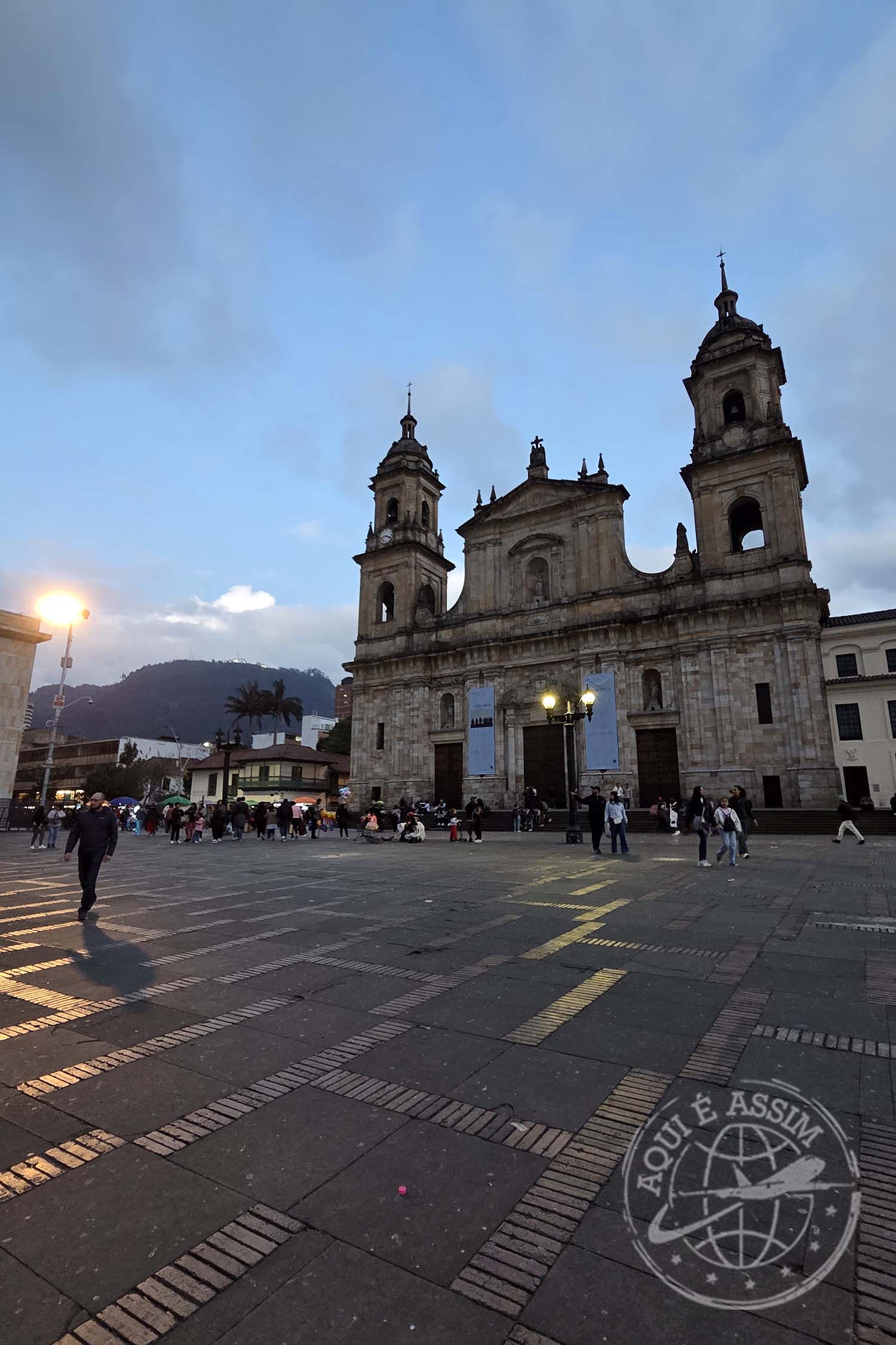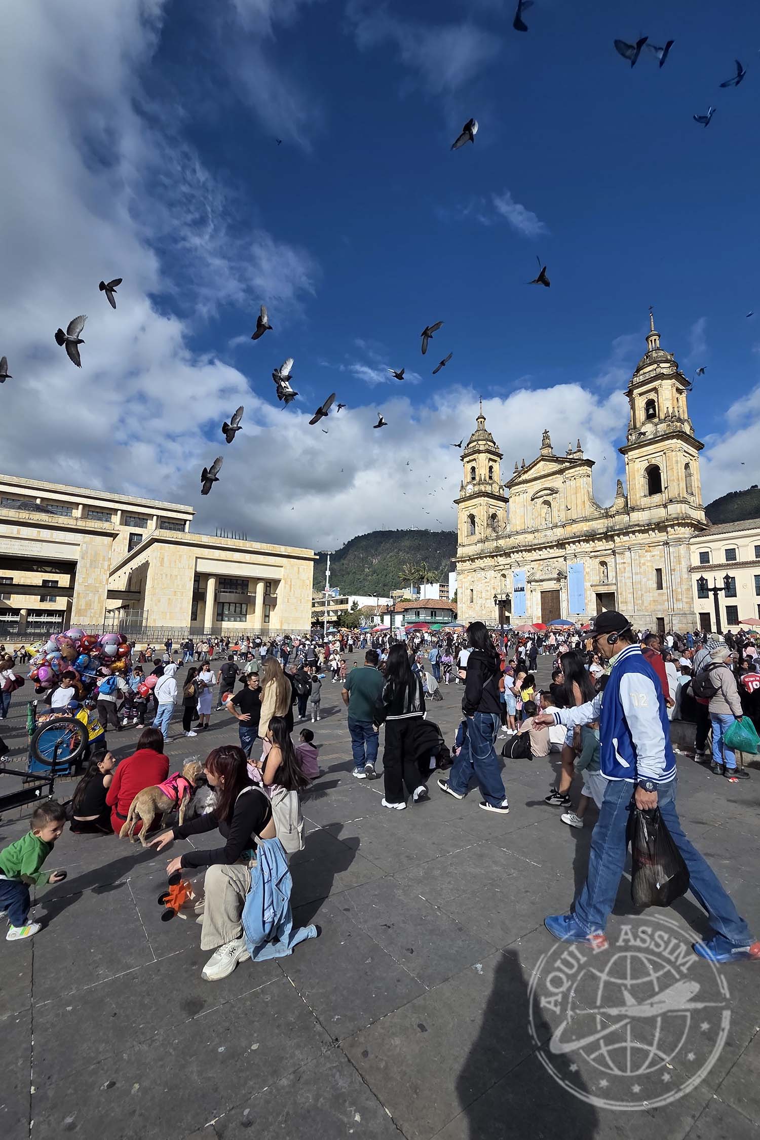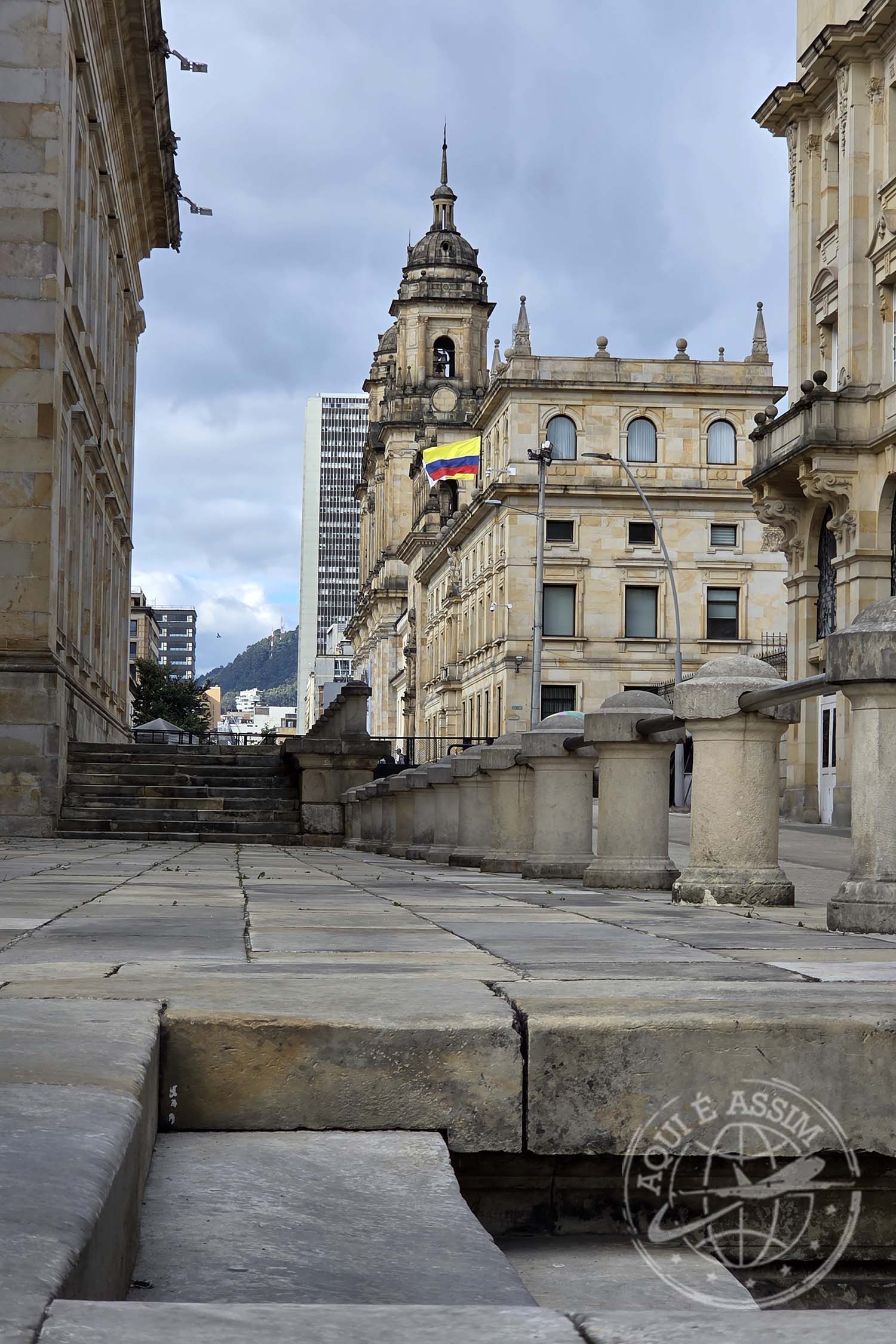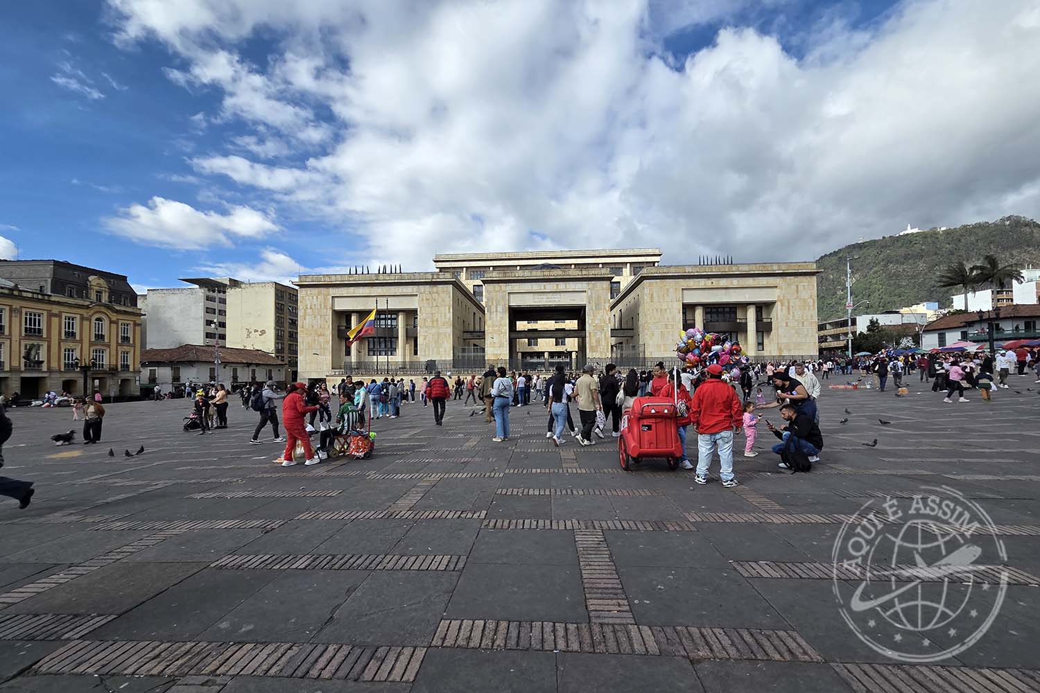 💡 CURIOSIDADE: a Plaza Bolívar é o coração político da Colômbia. Nela ficam o Capitólio Nacional, a Catedral Primada e o Palácio da Justiça — e cada prédio conta um pedaço da história do país.