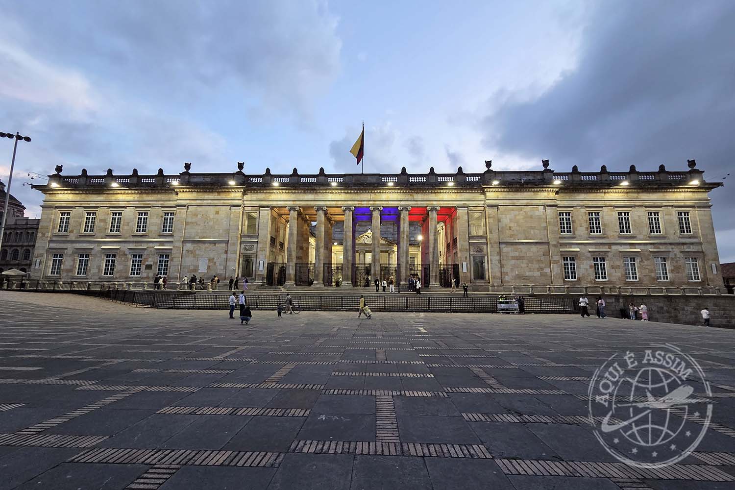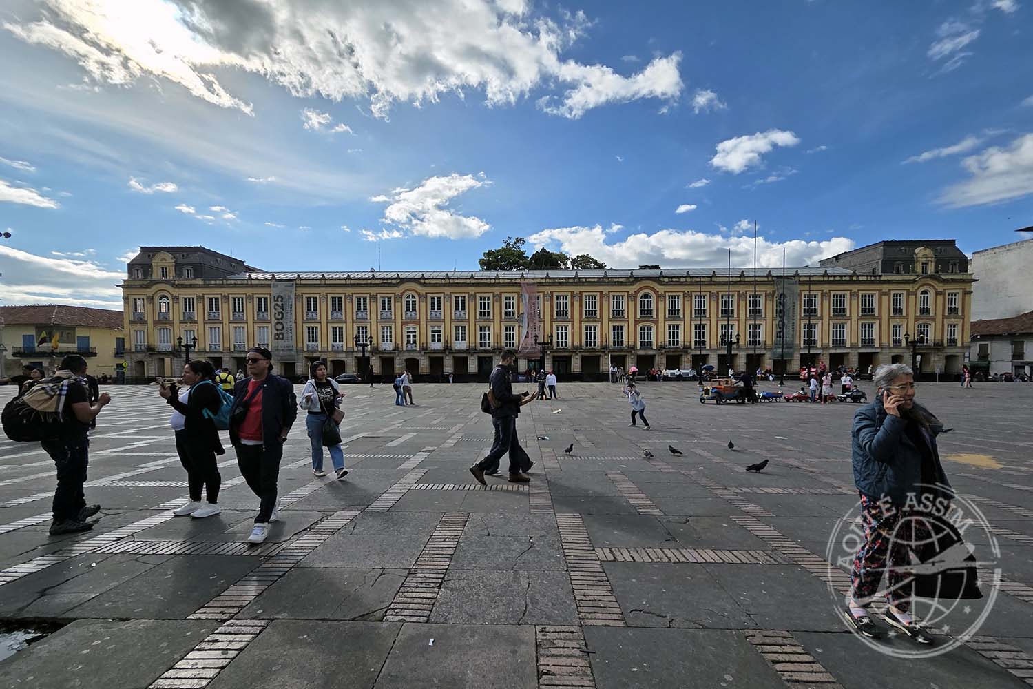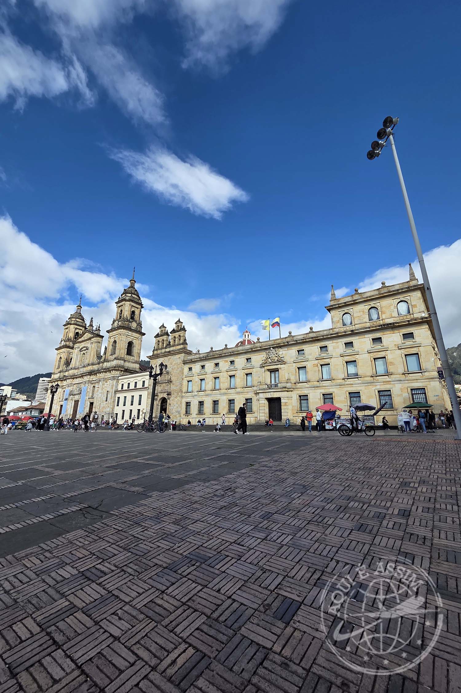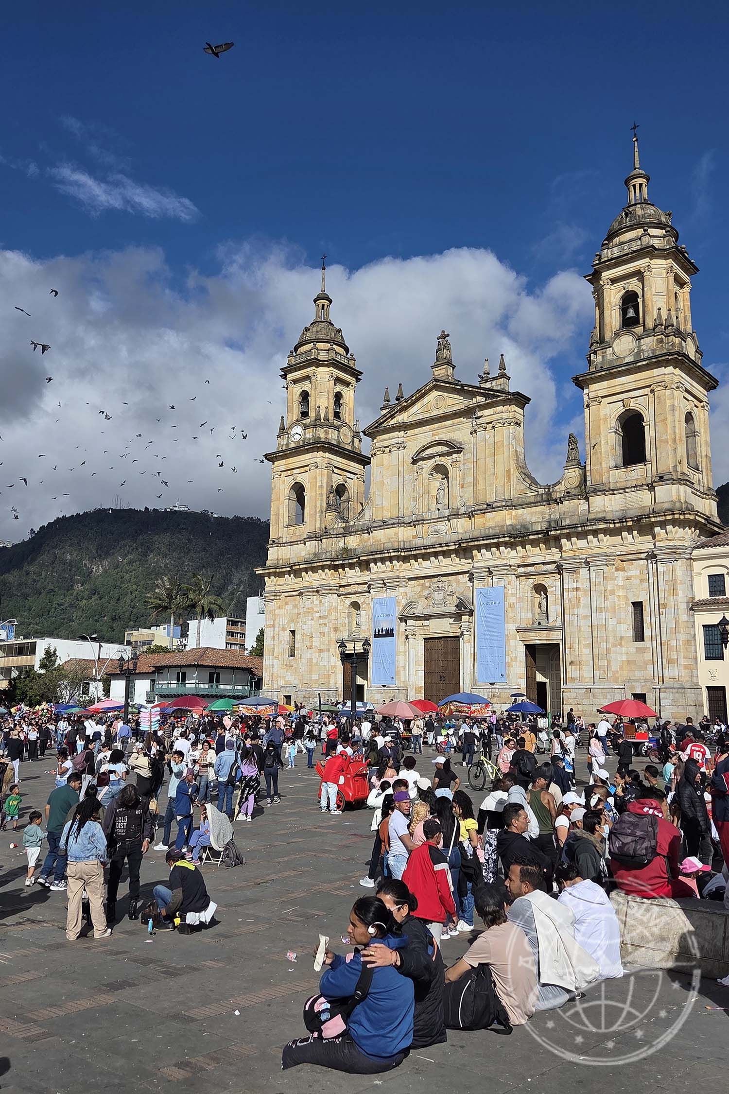 💡 CURIOSIDADE: a Plaza Bolívar é o coração político da Colômbia. Nela ficam o Capitólio Nacional, a Catedral Primada e o Palácio da Justiça — e cada prédio conta um pedaço da história do país.