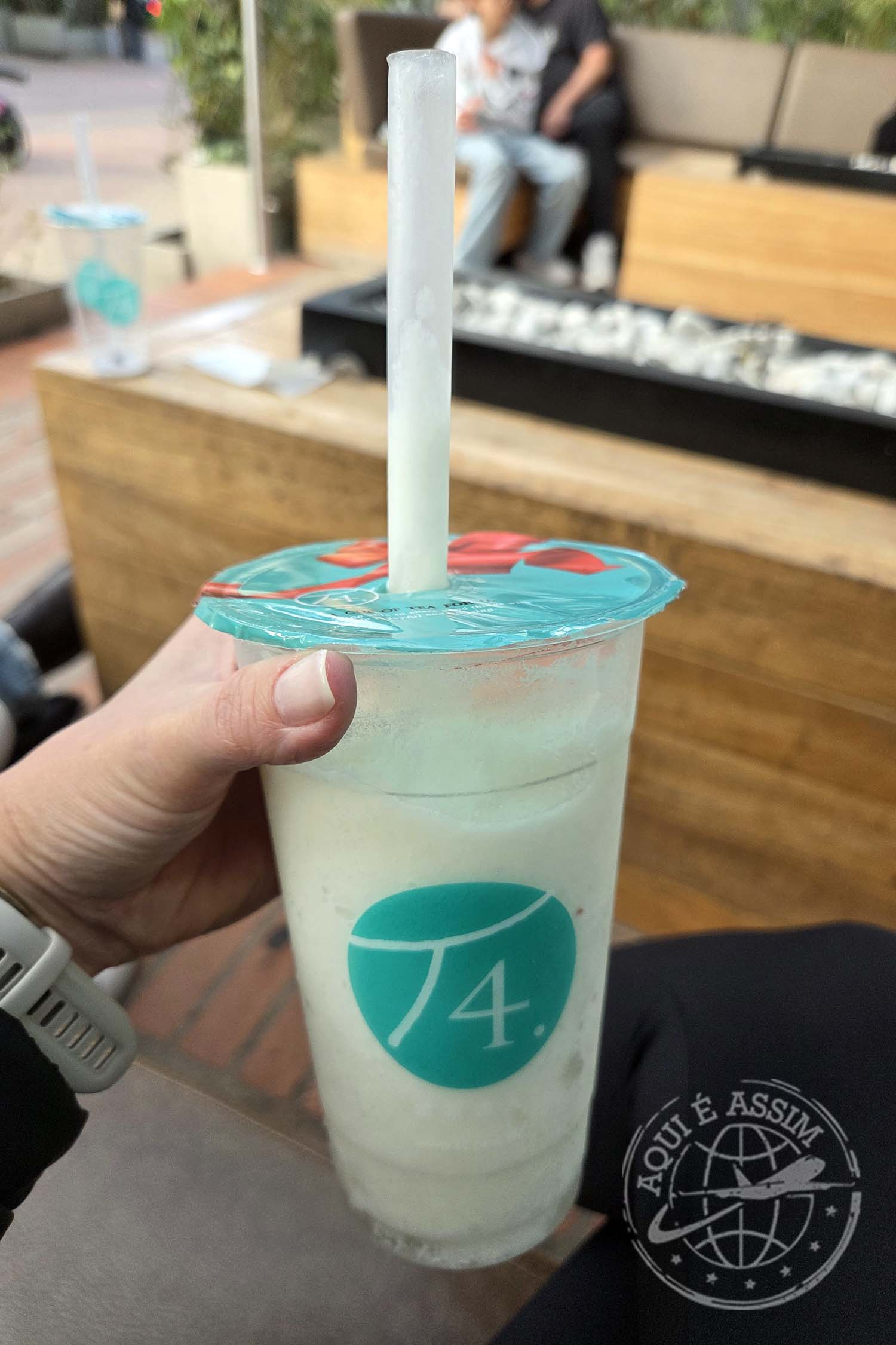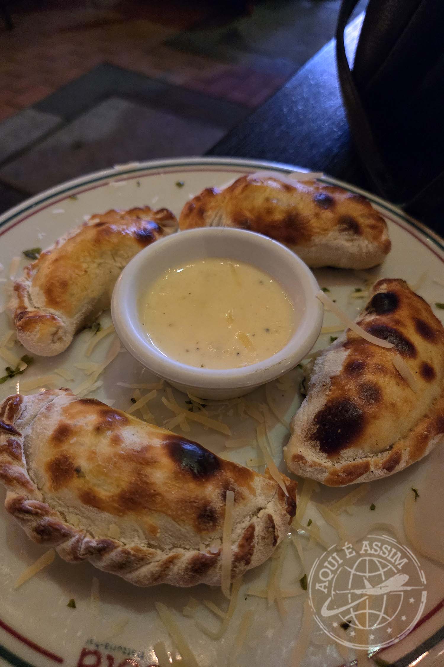 Depois, voltamos para a Zona T e tentamos entrar em um restaurante — mas não deixaram o Wesam entrar porque ele estava de bermuda. Acabamos indo a outro, o Isola, e foi uma ótima surpresa. Pedimos batata frita trufada, pastelzinho e eu ainda experimentei uma margarita mango biche. Uma das melhores margaritas que já provei!