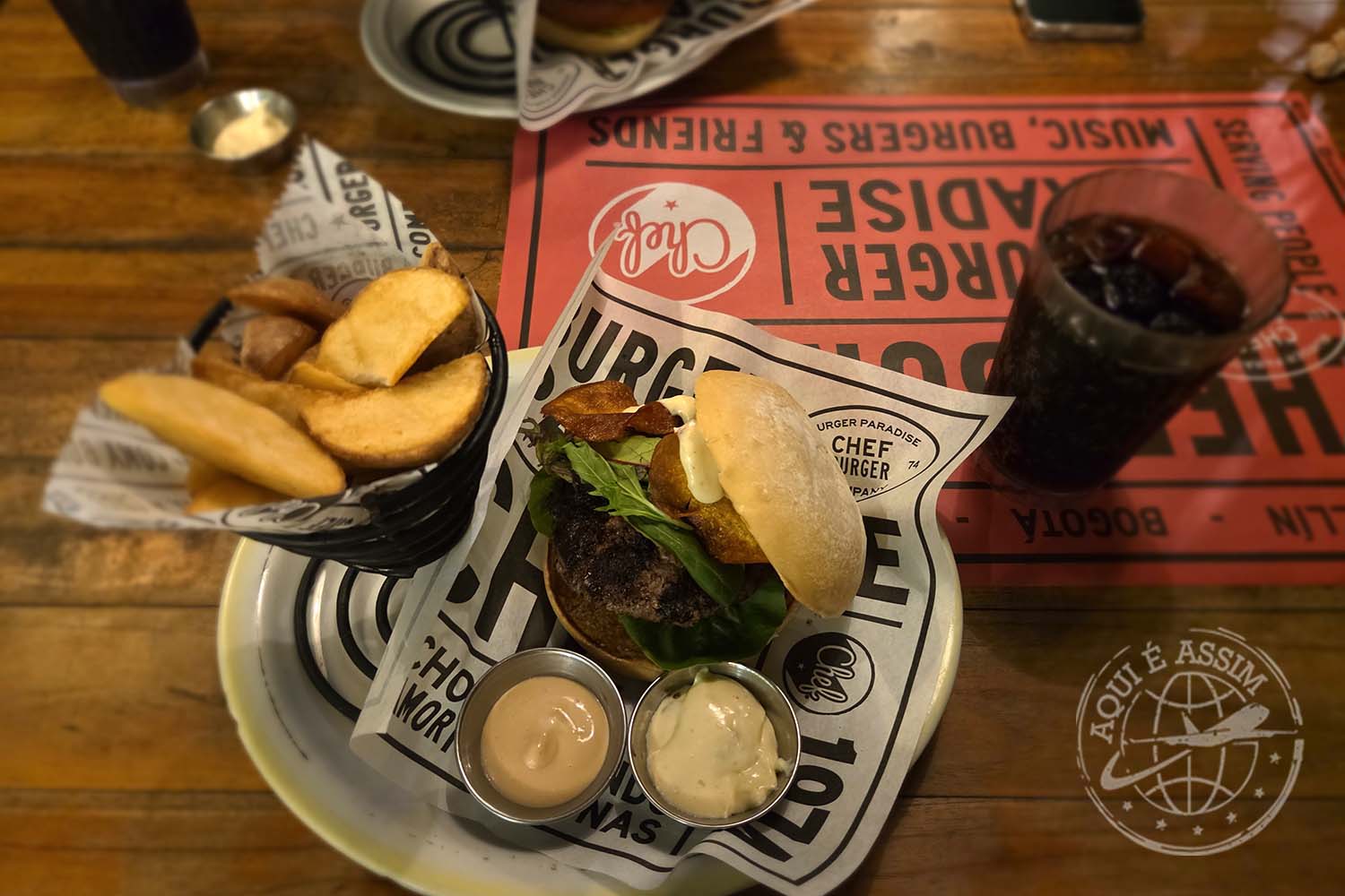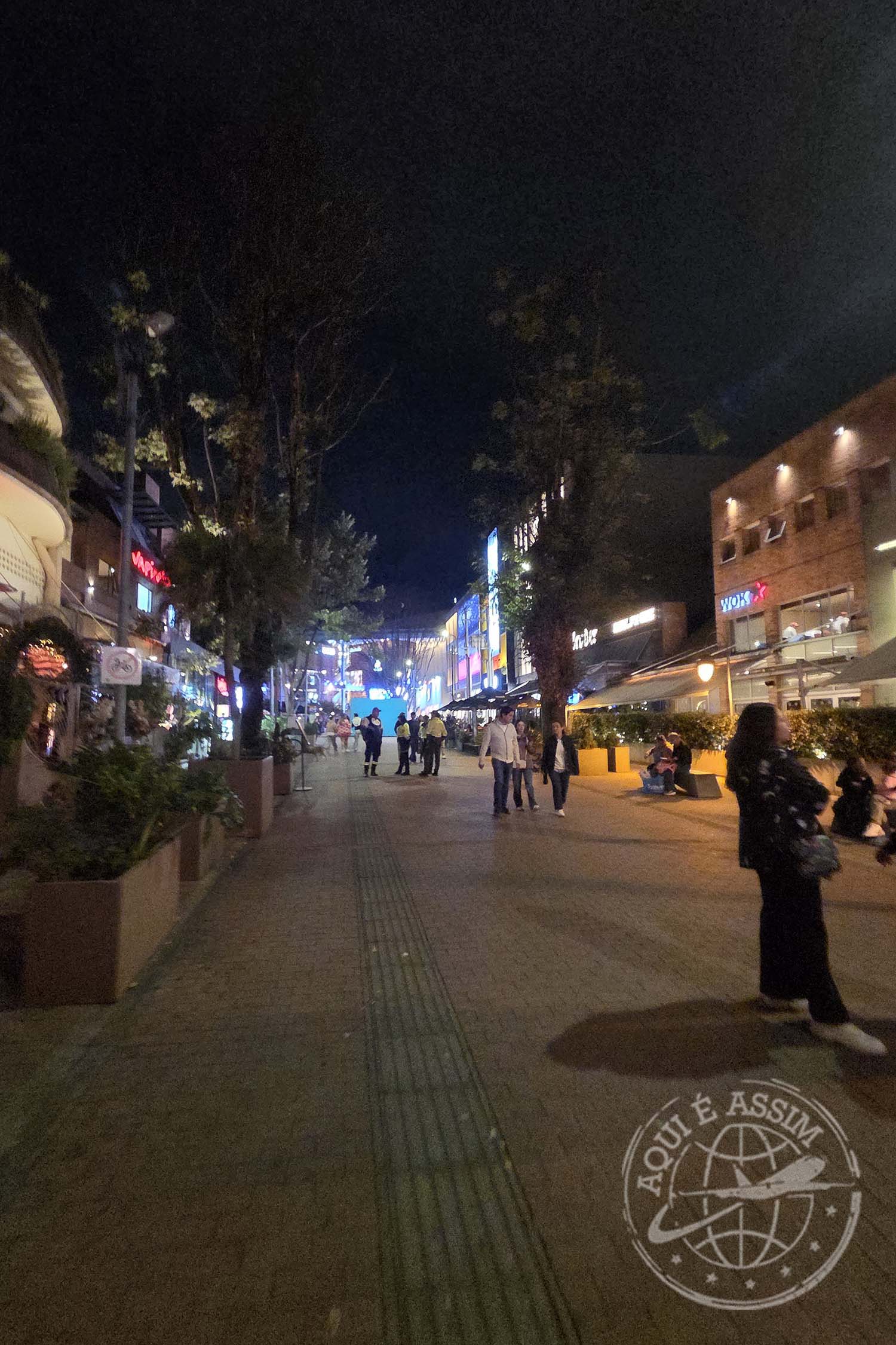 De lá, fomos caminhando até a Zona G, que é uma região mais gastronômica, cheia de restaurantes charmosos. A caminhada noturna foi uma delícia — segura, tranquila e com aquele clima fresco da cidade. Escolhemos um lugar para comer, uma hamburgueria. Bogotá, de fato, me surpreendeu positivamente. É organizada, limpa e transmite uma sensação de segurança.
