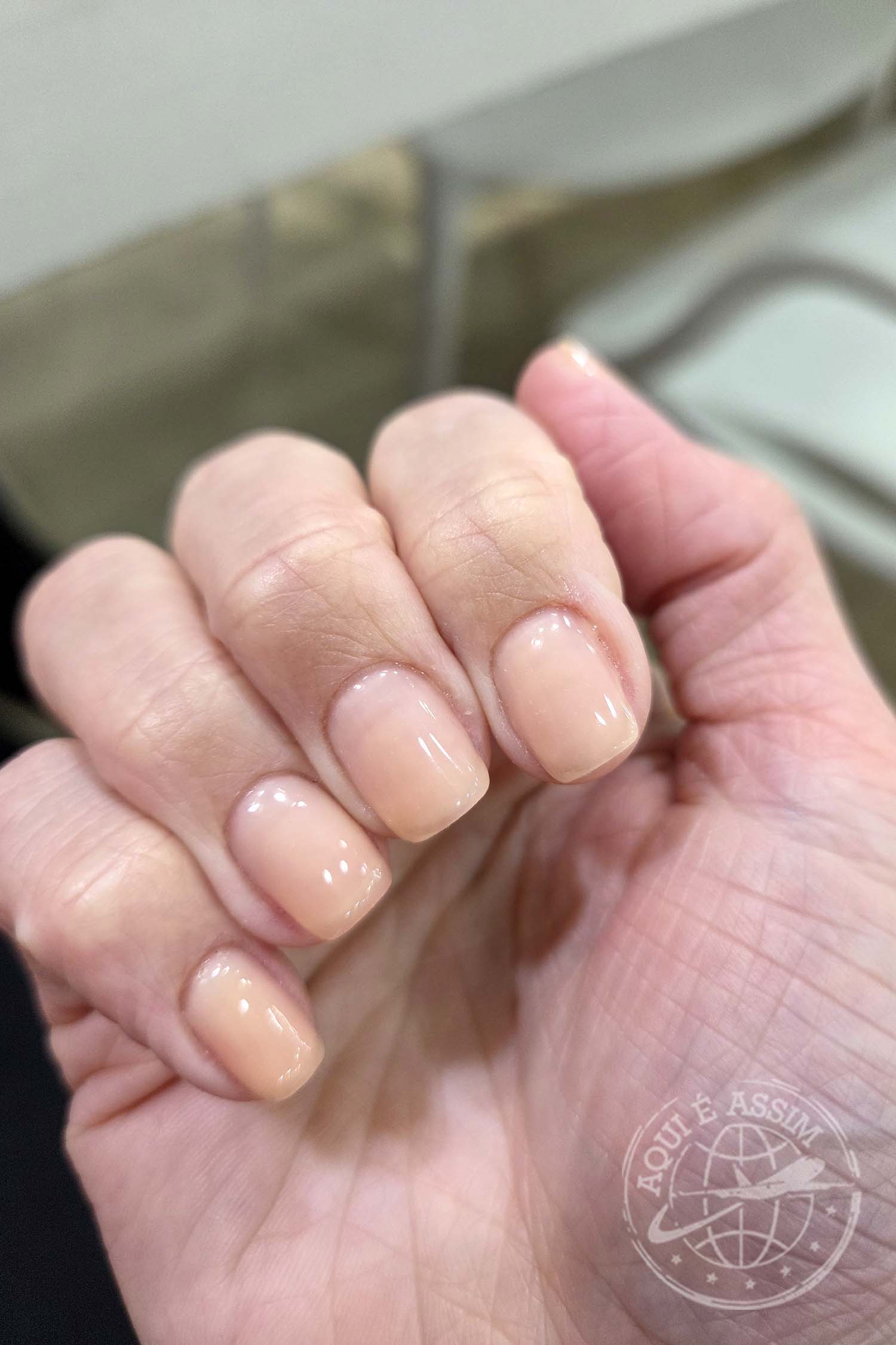 Antes da viagem, minha manicure no Brasil e eu montamos uma estratégia: remover parte da esmaltação acrílica para evitar descolamento durante o mês fora. Mas o plano falhou. Dois dias depois, as unhas começaram a soltar — e logo no primeiro dia aqui, uma delas já estava descolando completamente.