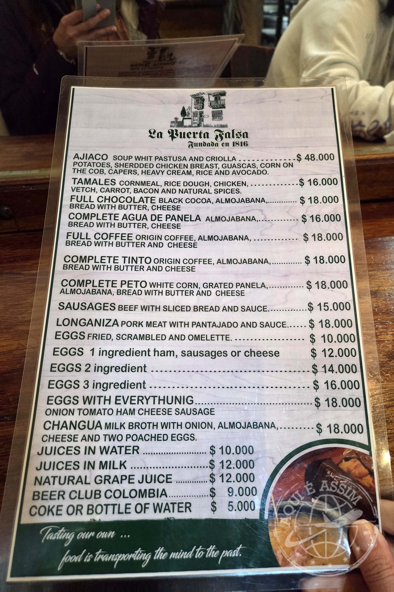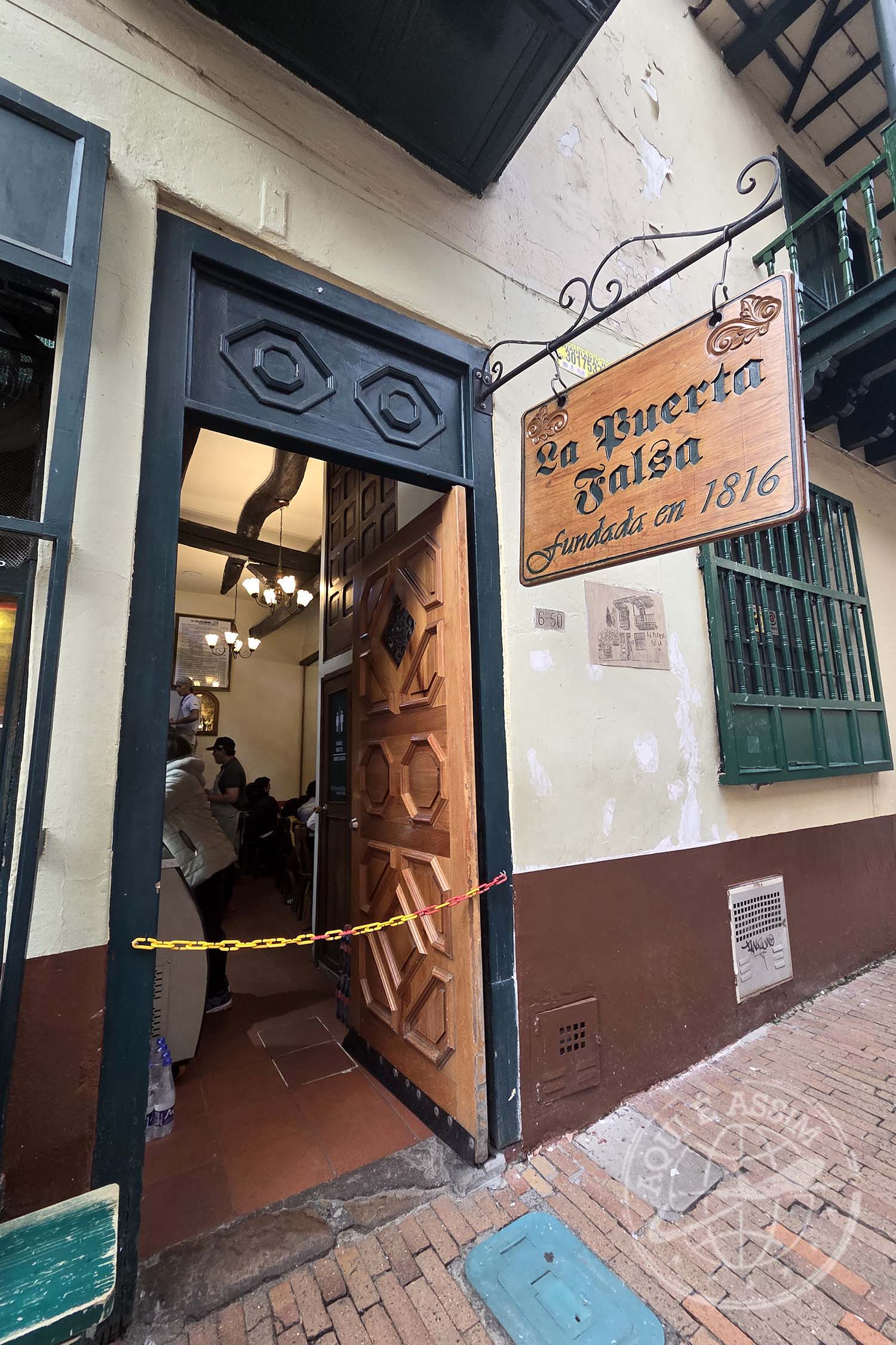 O La Puerta Falsa existe desde 1816 e é um dos lugares mais tradicionais de Bogotá. Fica em uma ruazinha lateral à Catedral Primada, repleta de lojinhas e vendedores ambulantes.