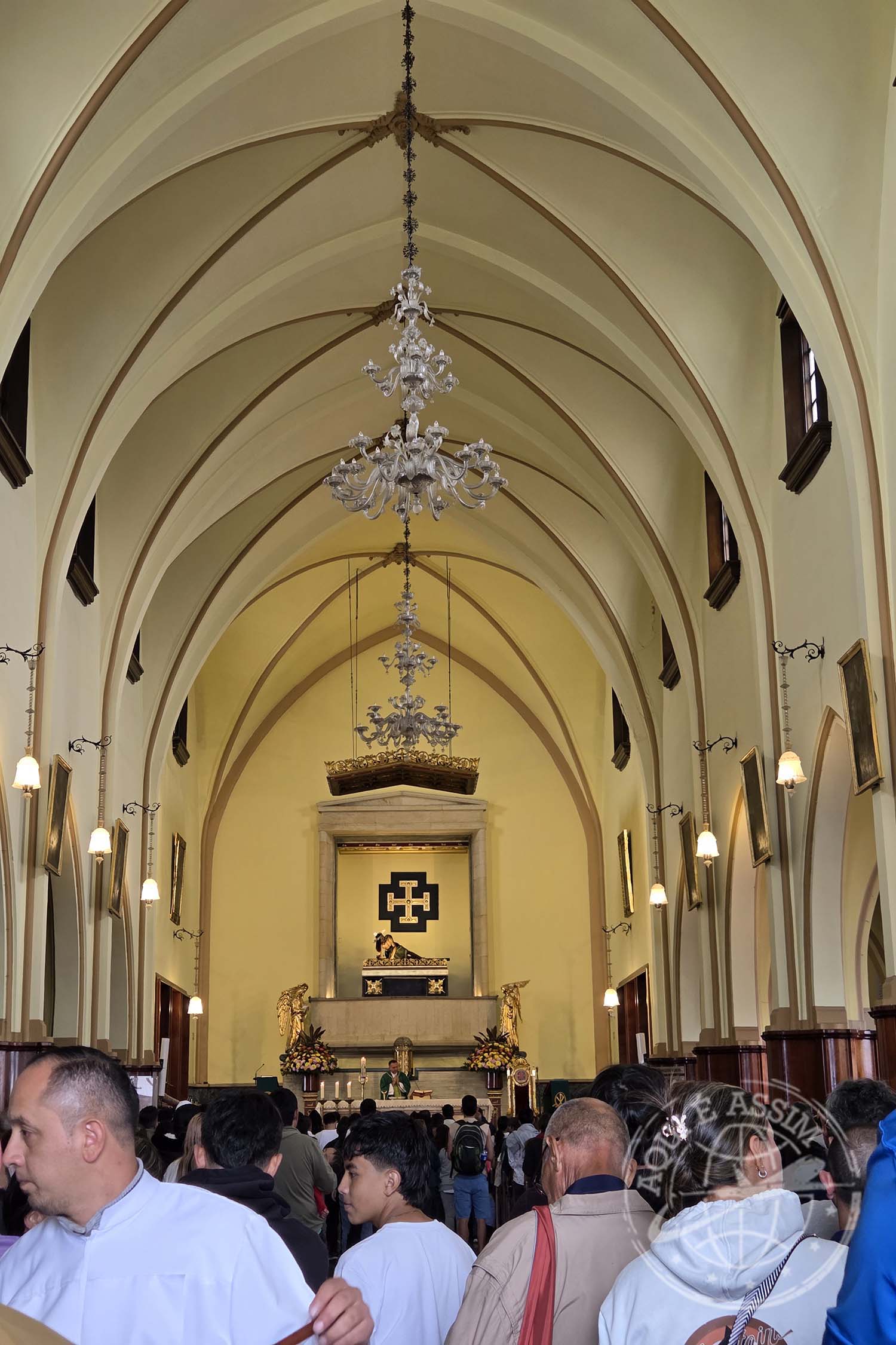 Entrei durante a missa e fiquei no fundo observando o movimento — as pessoas, o som suave do órgão, o murmúrio das orações. Depois que a celebração terminou, voltei com calma para fazer fotos dos vitrais e da fachada. A luz atravessando o vidro colorido dava à nave um tom quase celestial.
