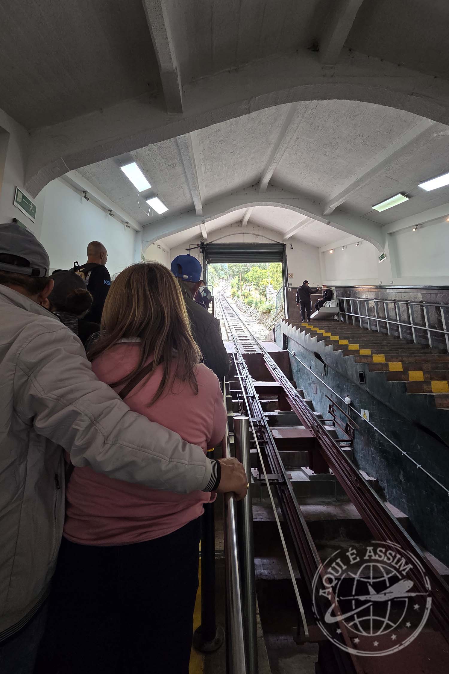 Subi de funicular e desci de teleférico. Ambos estavam cheios — e o teleférico, especialmente, parecia o bondinho do Pão de Açúcar, com dezenas de pessoas por cabine. Foi um pouco caótico, mas bastou chegar ao topo pra esquecer o desconforto.