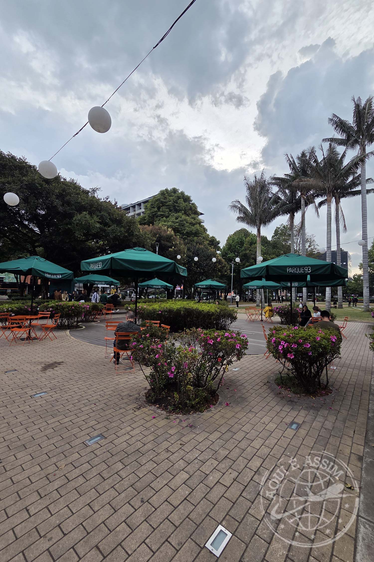 Quando finalizei o expediente, resolvi sair um pouco. Caminhei até o Parque 93, que fica a cerca de 20 minutos do hotel. O parque é agradável, cercado por cafés e restaurantes, mas confesso: achei simples, nada muito marcante. Tirei algumas fotos, dei uma volta e segui o plano de resolver uma pendência prática — fazer minhas unhas em Bogotá.