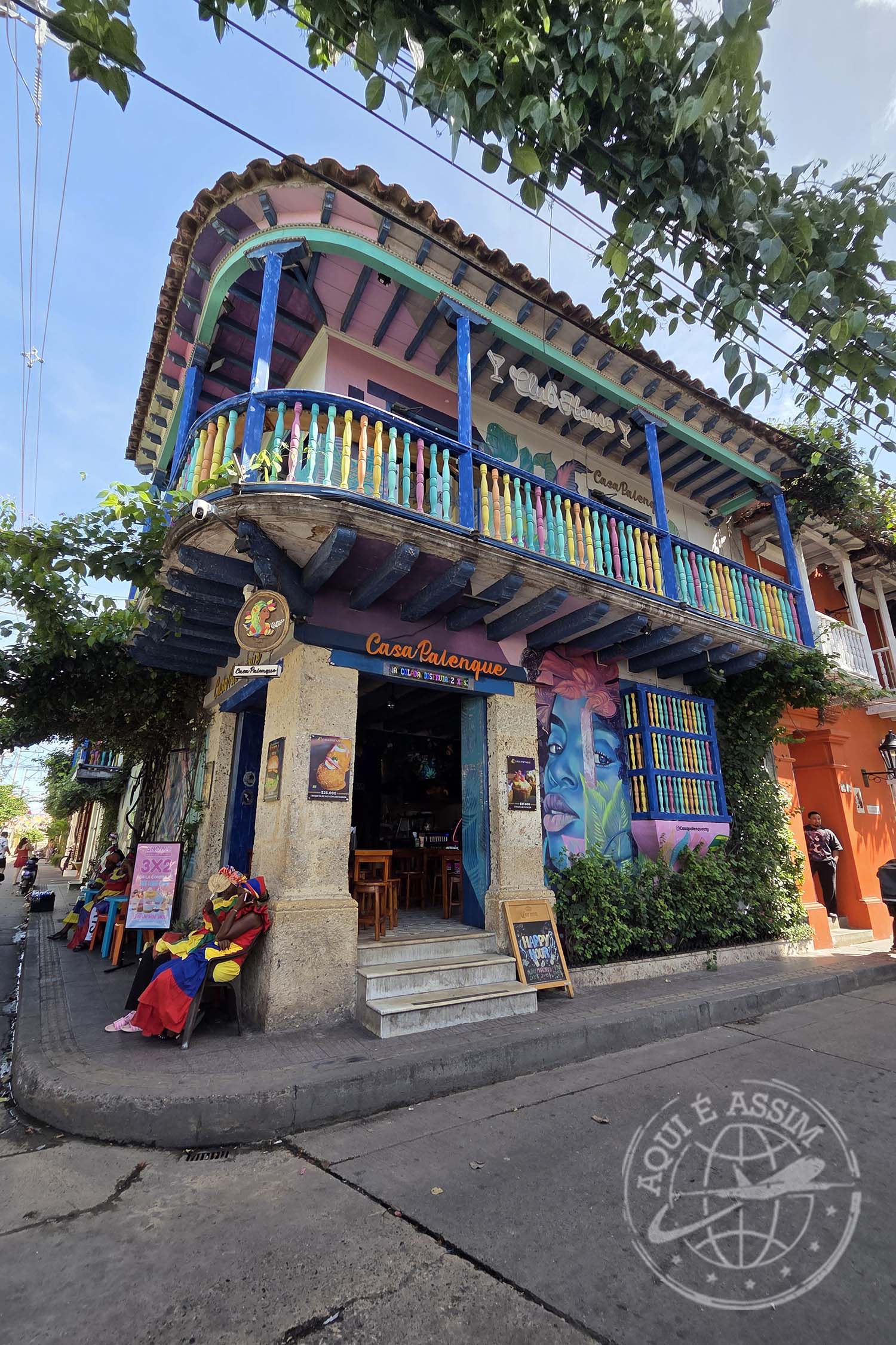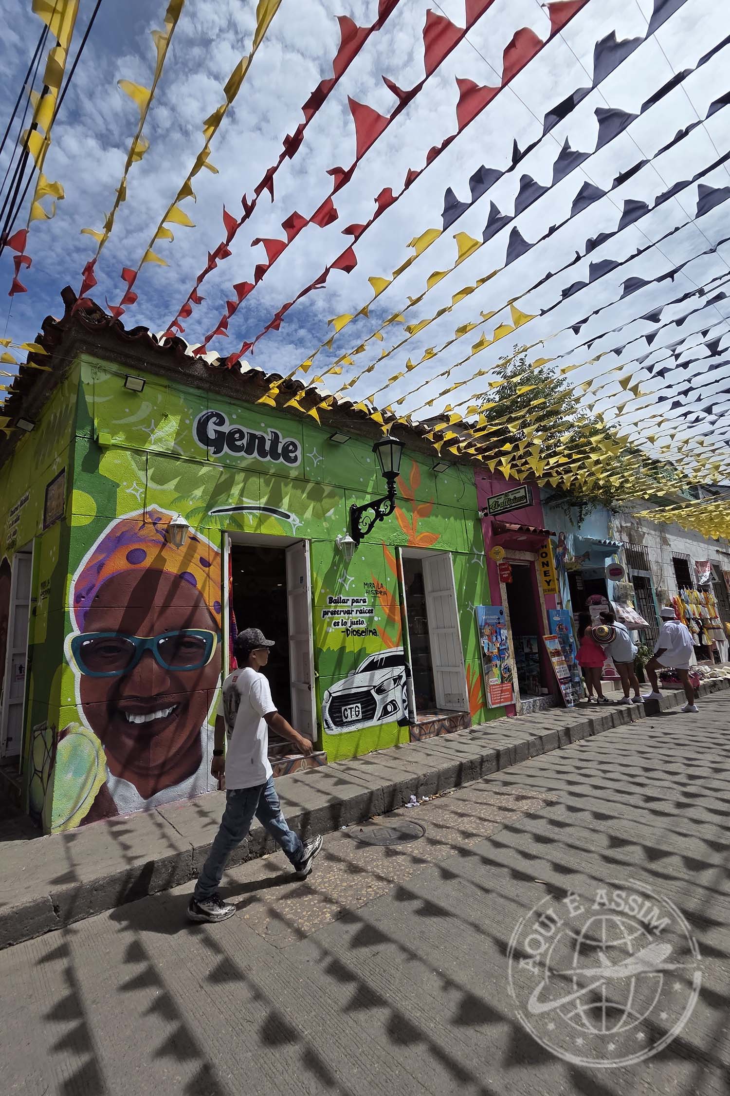 Saí então para conhecer a região de Getsemaní, um dos lugares mais vibrantes da cidade — colorido, vivo, cheio de murais, arte de rua, som, calor, vida. Almocei por lá, no El Cabildo, e comi muito bem.