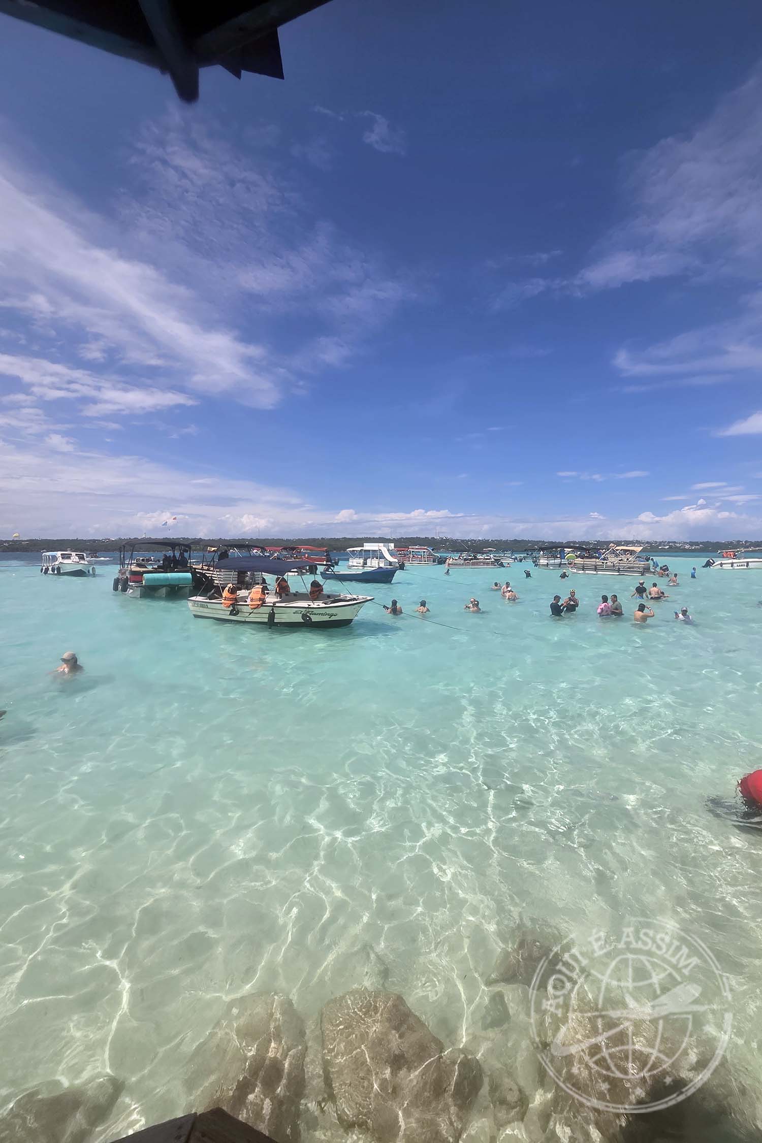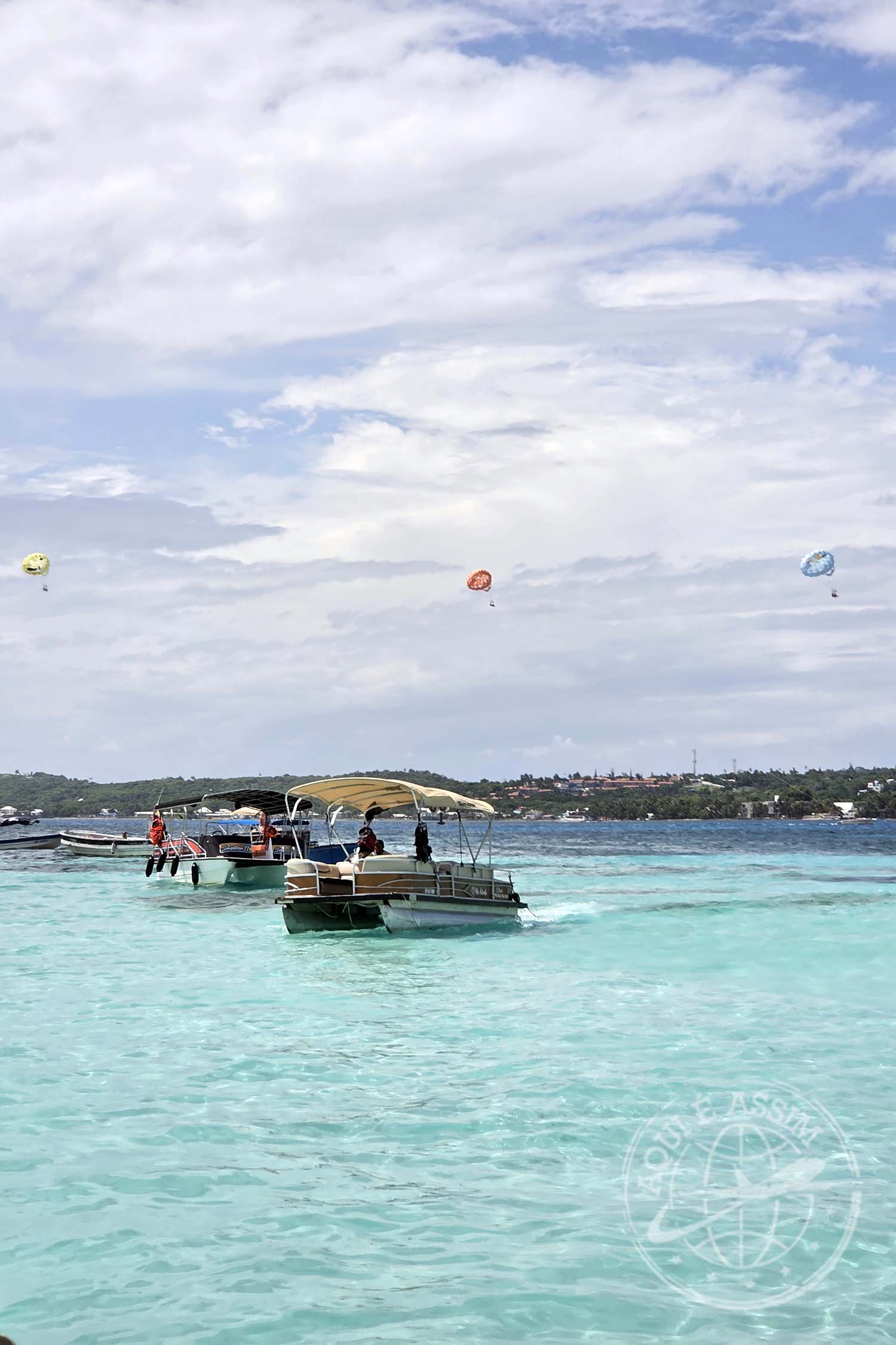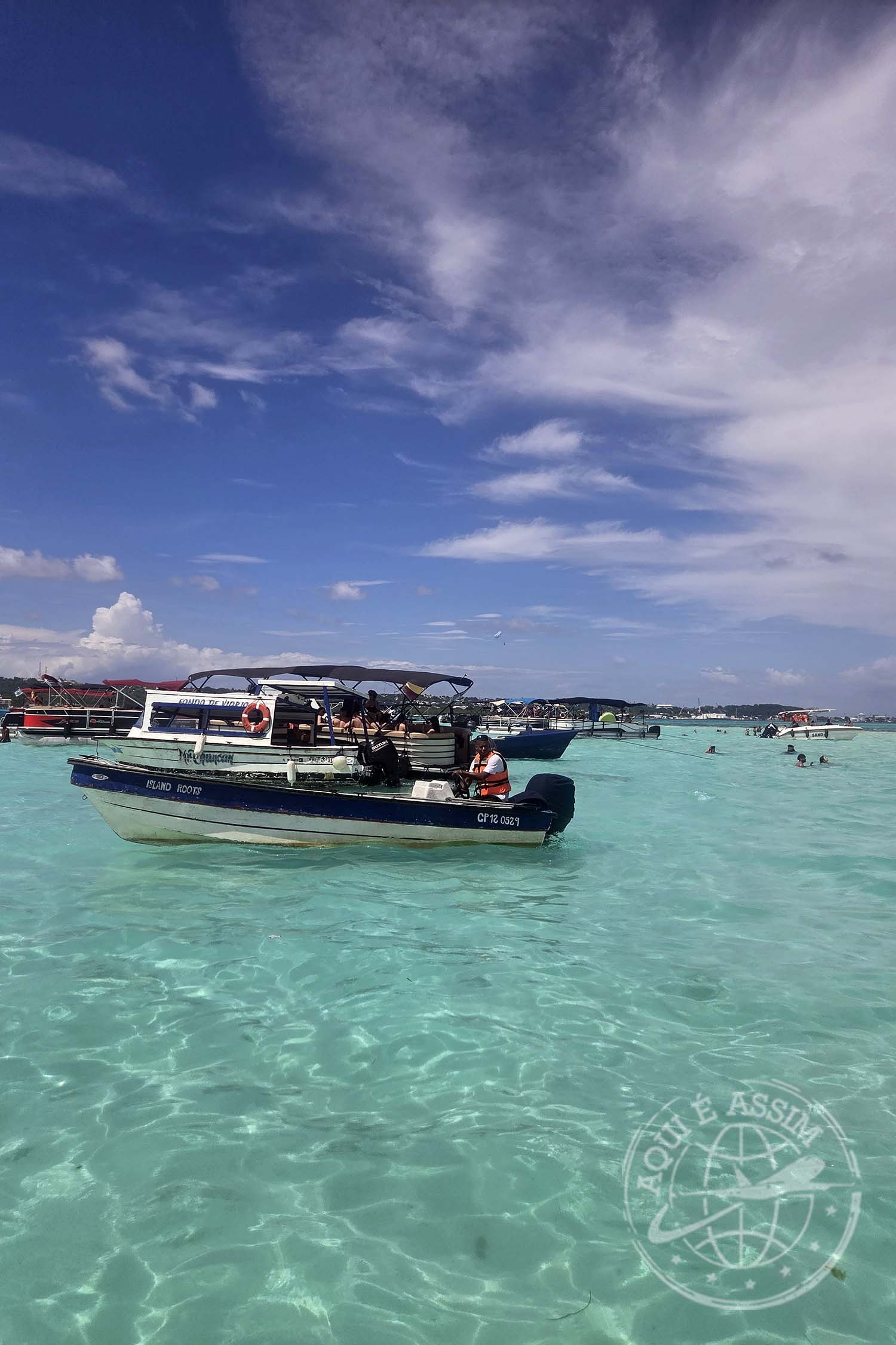 Quando eu ainda estava me arrumando, a recepção me ligou pedindo pra eu descer. Fui caminhando até o que eles chamam de Muelle — píer. Lá, entendi a dinâmica: são vários portões, várias empresas organizando os passeios. Esperei no portão 3 até ser chamada, e aí embarquei rumo à Isla del Encanto, que tem um hotel de mesmo nome.