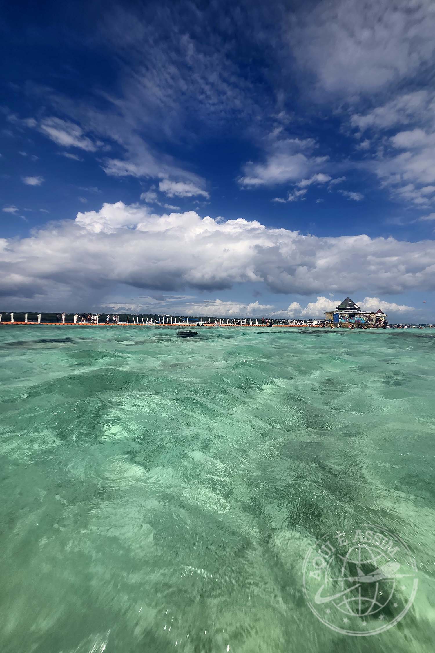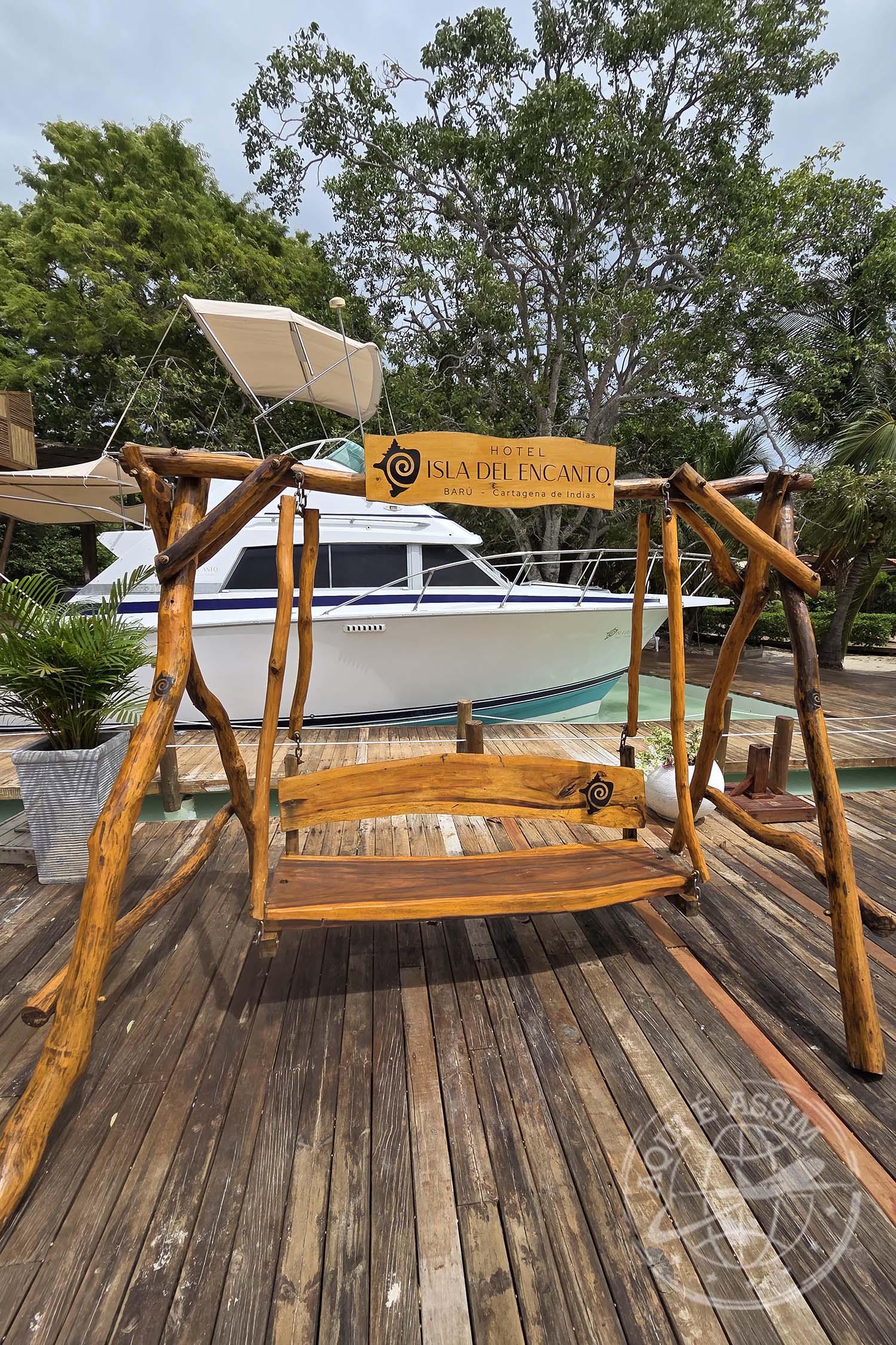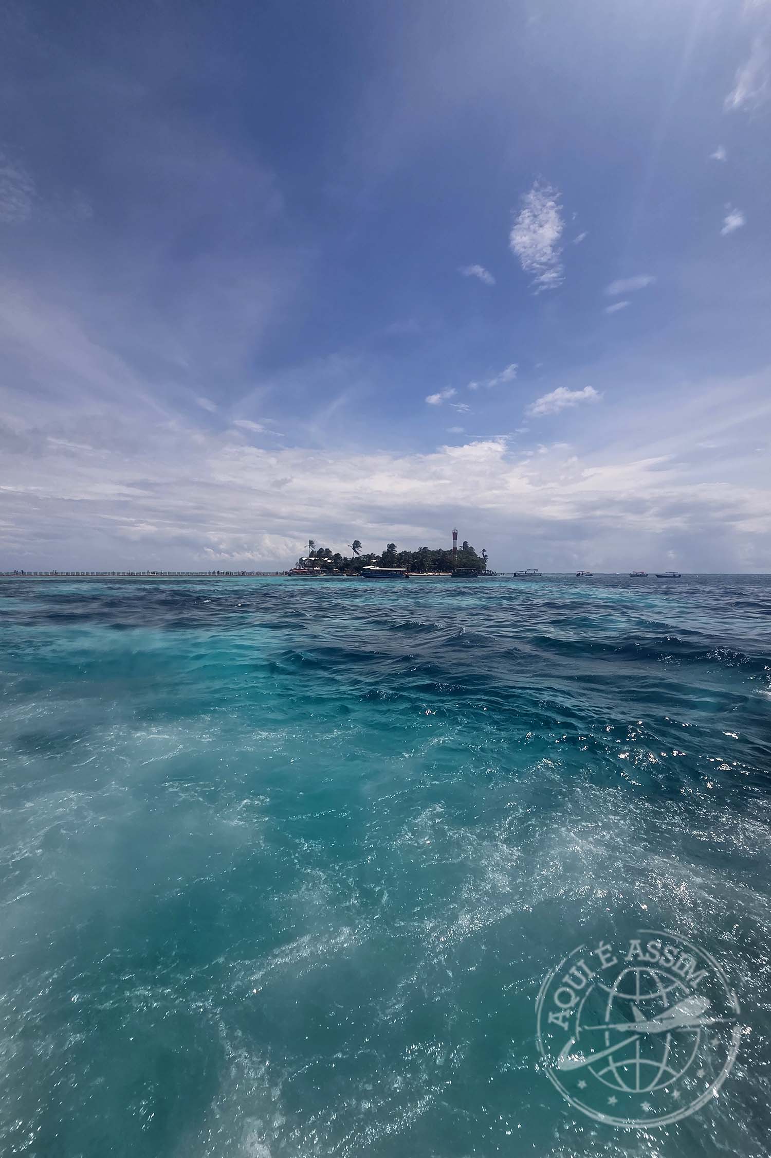 Quando eu ainda estava me arrumando, a recepção me ligou pedindo pra eu descer. Fui caminhando até o que eles chamam de Muelle — píer. Lá, entendi a dinâmica: são vários portões, várias empresas organizando os passeios. Esperei no portão 3 até ser chamada, e aí embarquei rumo à Isla del Encanto, que tem um hotel de mesmo nome.