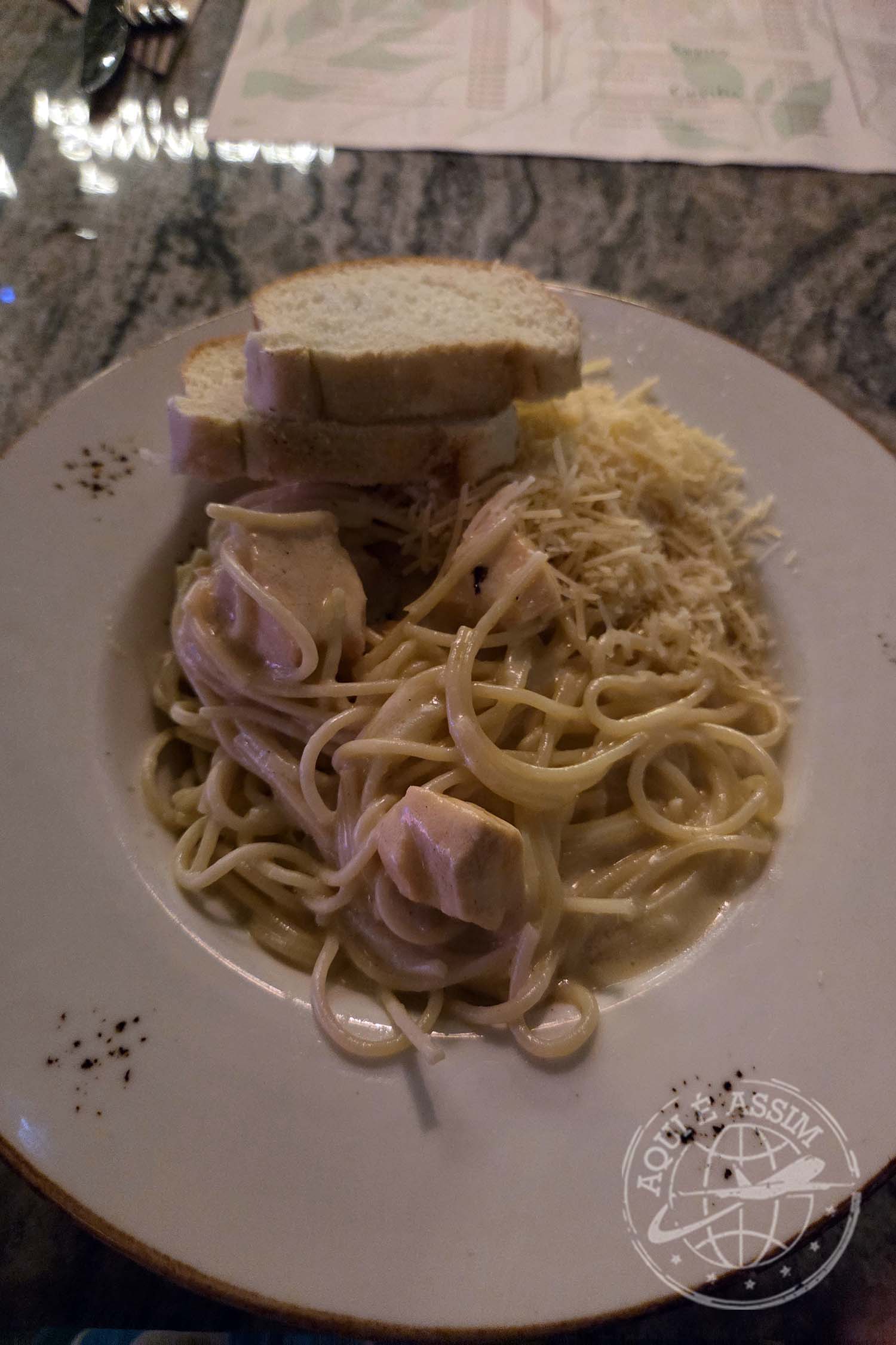 Entrei no Museu da Esmeralda, vi um colar lindíssimo — fiquei super tentada a comprar, mas ainda bem que me segurei. Não dá pra me dar presente todo dia, senão eu voltaria pobre 😂. Depois fui ao San Valentín, indicação de uma amiga, e pedi massa com salmão e, claro, mais uma limonada de coco (a segunda do dia!). O prato estava delicioso, mas pesado — comi demais, fiquei cheia e sem vontade de voltar pro Alquímico.