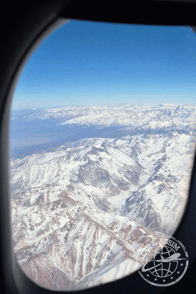 A vista das cordilheiras lá do alto foi de tirar o fôlego. Eu já tinha tido a oportunidade de ver quando viajei a Mendoza, mas é muito diferente atravessar a Cordilheira dos Andes no inverno: branquinhas, imponentes, emocionantes.