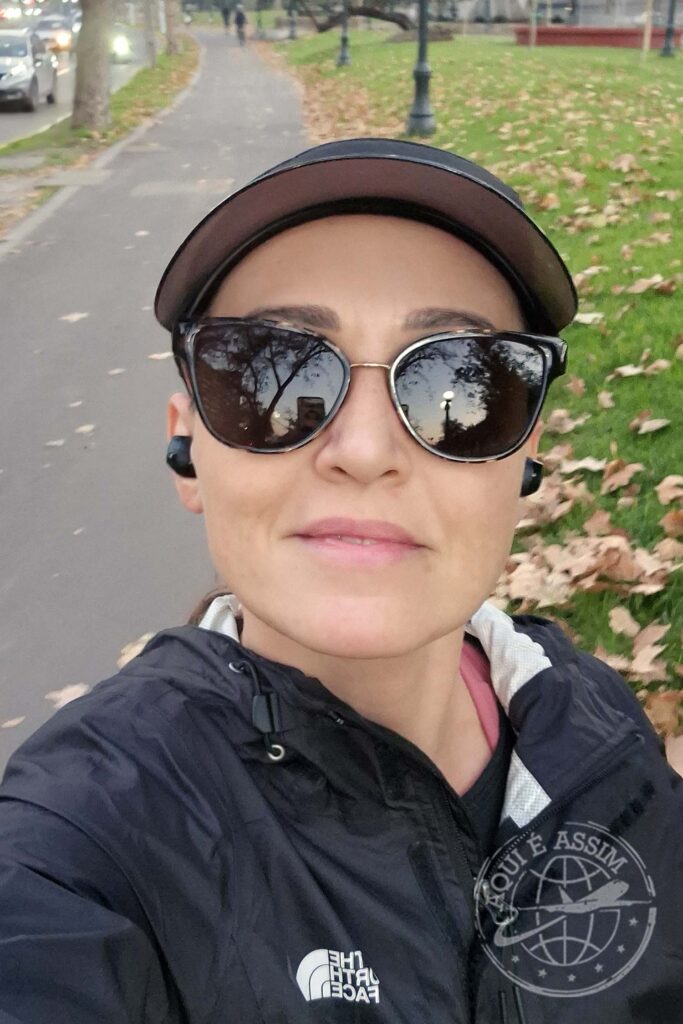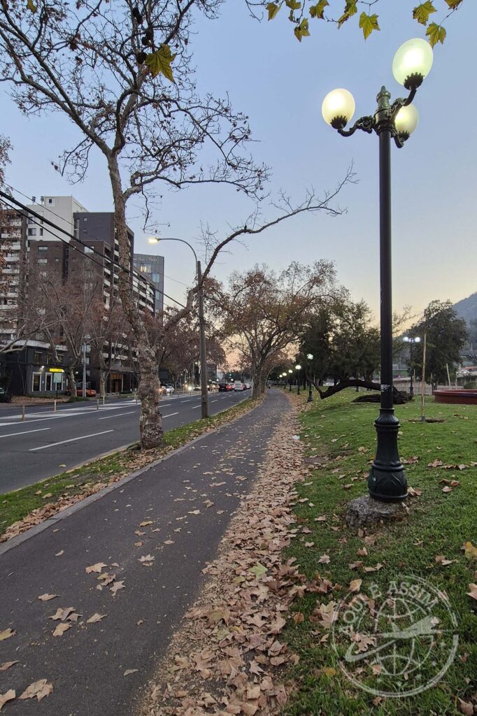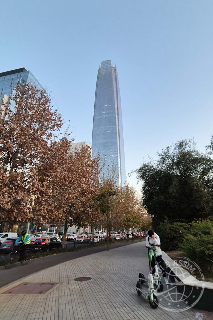 Depois de deixar as malas, saí para correr — afinal, era dia de treino. Fiz uma boa caminhada/corrida de reconhecimento local. Vi que estava muito perto do Sky Costanera. Reparei também em alguns detalhes culturais: os chilenos fumam bastante, usam bicicleta como meio de transporte e, claro, o frio é intenso.
