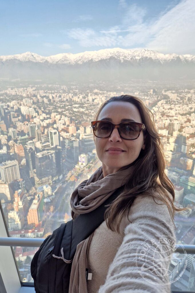 Meu grande objetivo do dia era visitar o Sky Costanera, o prédio mais alto da América do Sul, com mais de 300 metros de altura e vista panorâmica de 360° de Santiago e da Cordilheira dos Andes. Embora digam que a vista mais bonita seja de manhã, a motorista do meu transfer havia sugerido ir no final da tarde para ver o pôr do sol. Decidi seguir o conselho.
