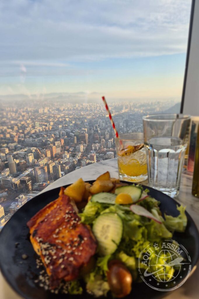 Como havia feito apenas um almoço leve, aproveitei para jantar no alto. Curti a vista e saboreei um delicioso prato de salmão com batatas rústicas, salada e um drink no 300 Sky Café Bar. Estava tudo excelente, e o drink, embora tenha me deixado levemente tonta (não costumo beber), foi uma forma de celebrar o início das férias.