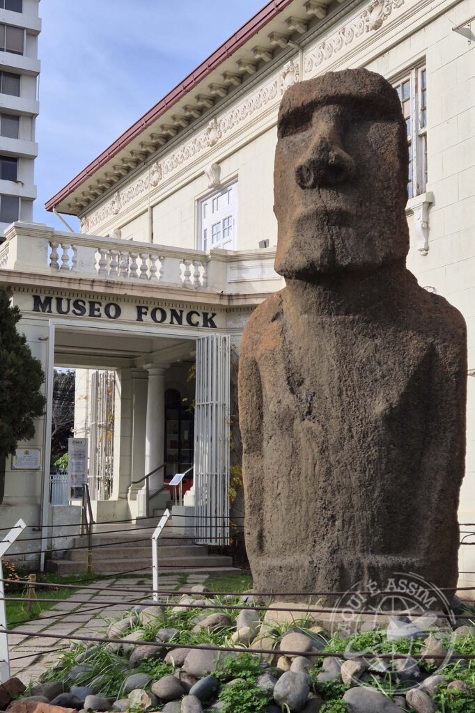 Fizemos uma parada também em frente a um museu que exibia um Moai da Ilha de Páscoa. O guia contou que muitos foram derrubados no passado por descrença e que hoje a comunidade Rapa Nui reivindica a devolução das estátuas espalhadas pelo mundo (há exemplares em Viña, Londres e outros lugares).